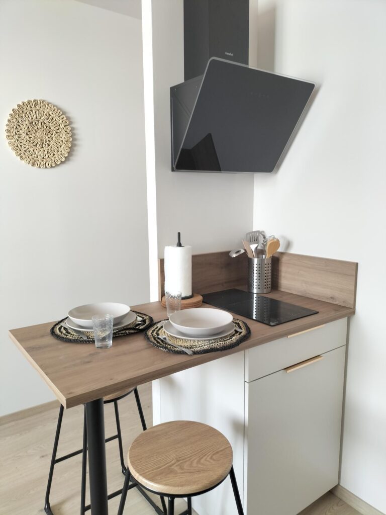 L’ensemble de l’appartement est totalement équipée de meubles, vaisselles et électroménagers neufs et de qualité