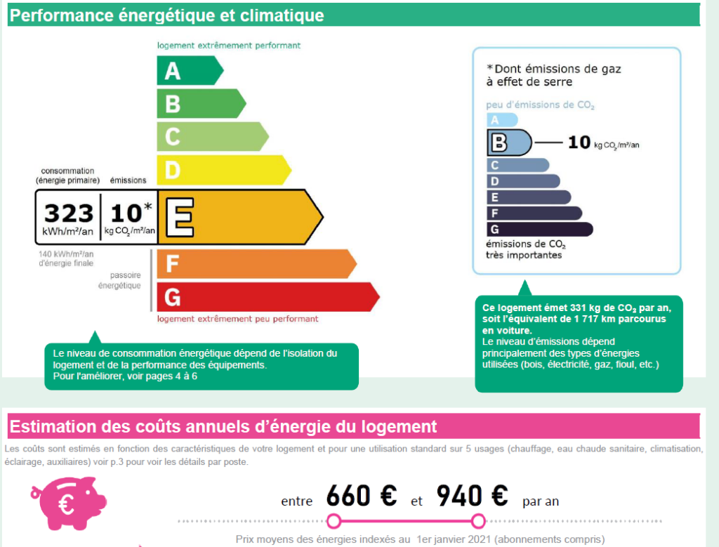 Estimation des coûts annuels d’énergie du logement comprise entre 640 euros et 960 euros par an