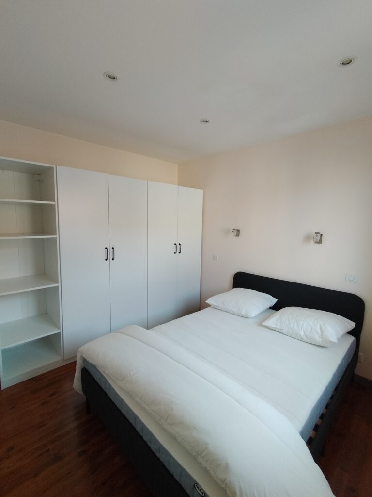 Une chambre aménagée avec un lit deux places et un grand dressing